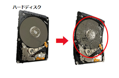 ハードディスクのデータ記憶領域であるプラッタを折り曲げて破壊します。